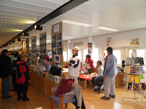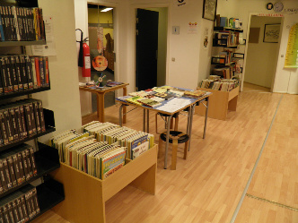 i læsestuen kan du læse forsk. bøger og aviser / ugeblade f.eks.