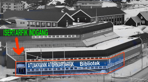 Atuagaateqarfik sumiippat? / Hvor er Bibliotek? Atuagaateqarfik illoqarfiup qeqqaniippoq, kommuunip allaffiani, ini allerpaaqBiblioteket er i kommunikontoret, stueetage ved indgang